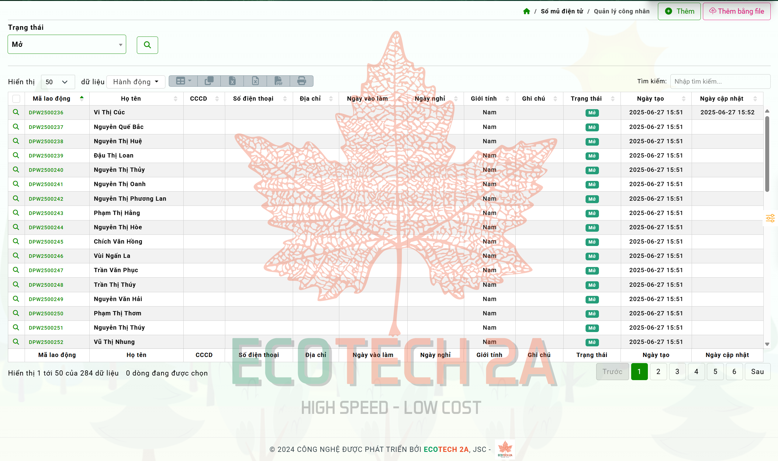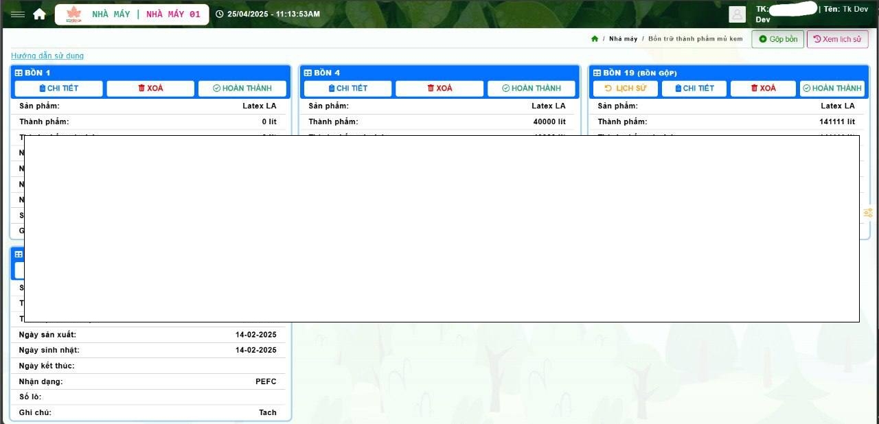 - Đồng bộ số liệu quy khô từ xưởng cung cấp và chạy tự động về công nhân, lô, phần cây
