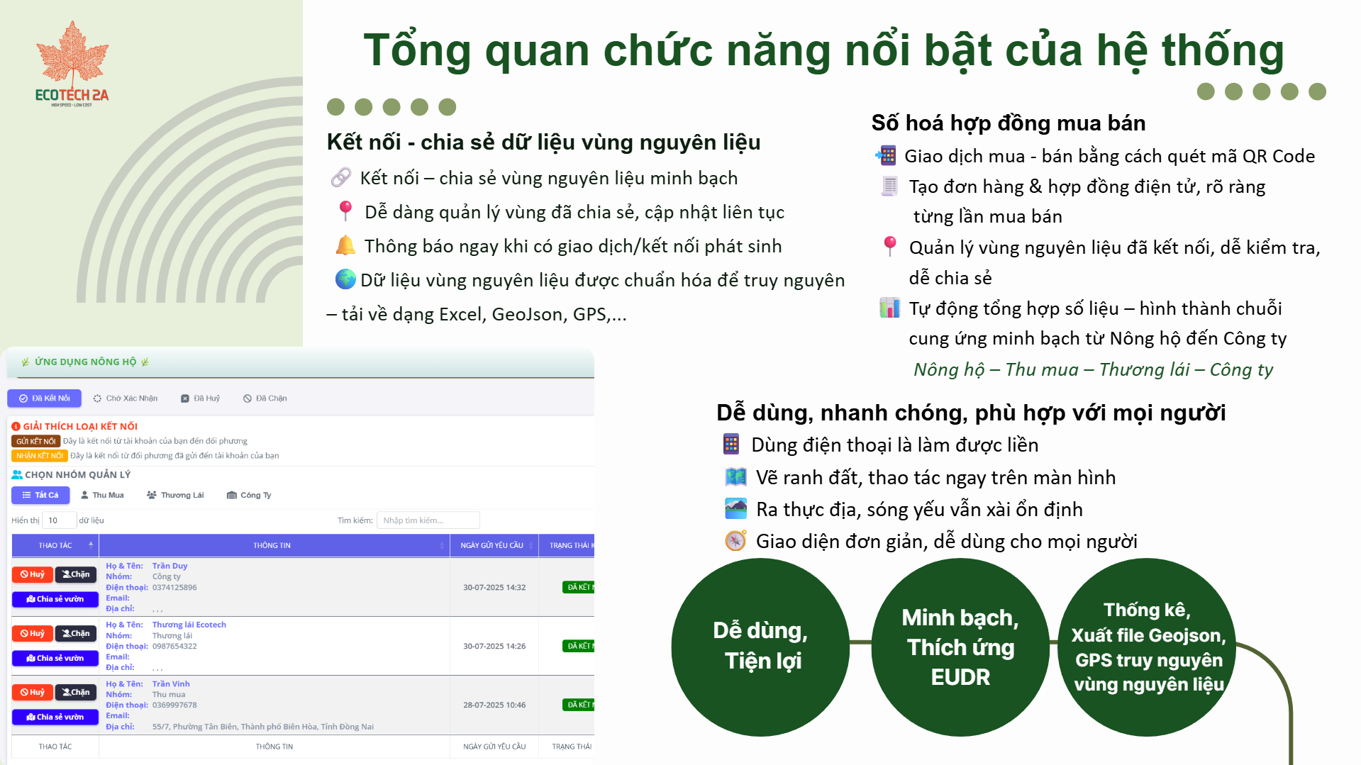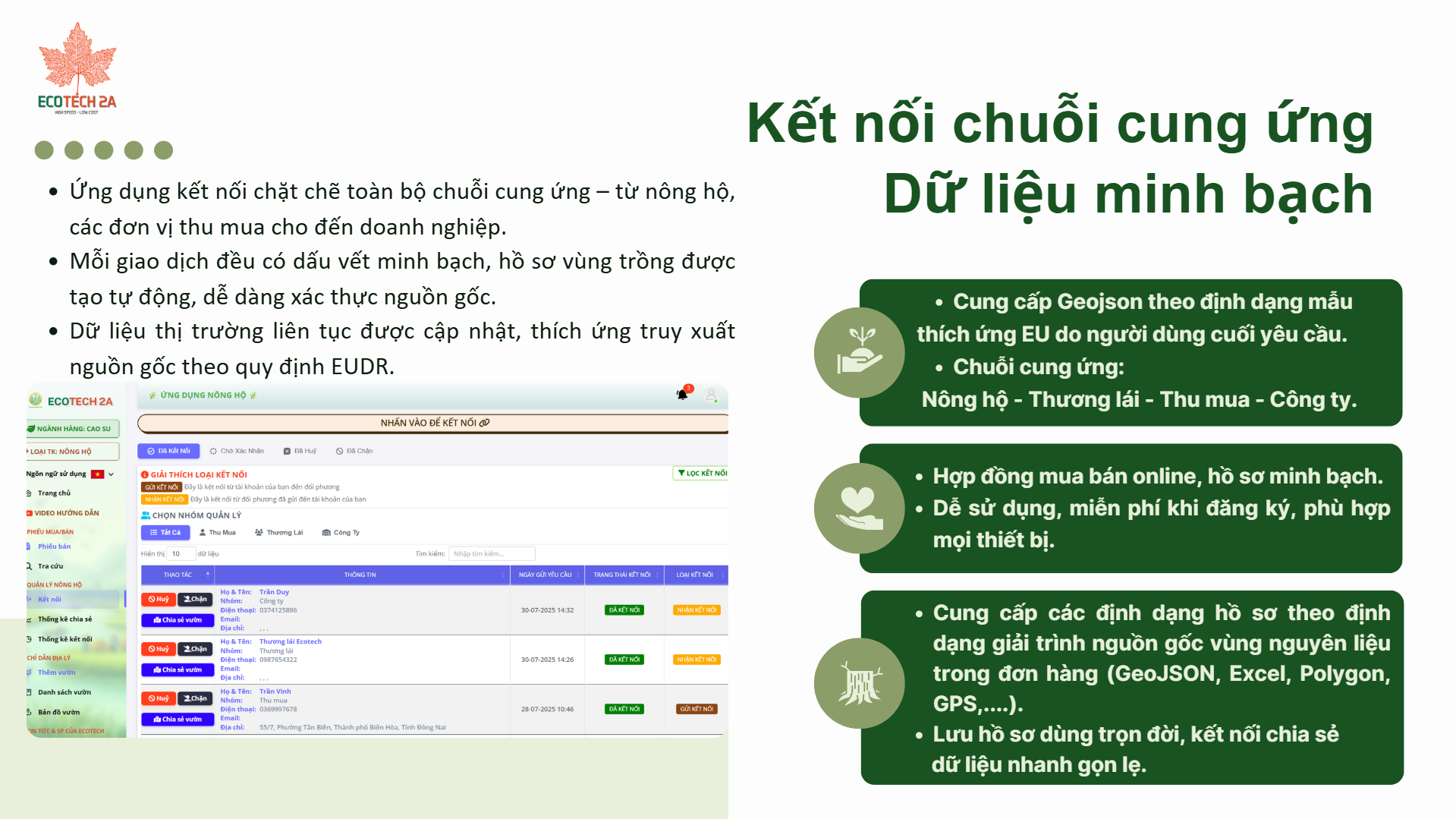 - Liên kết với DDS – EUDR, hỗ trợ truy xuất nguồn gốc