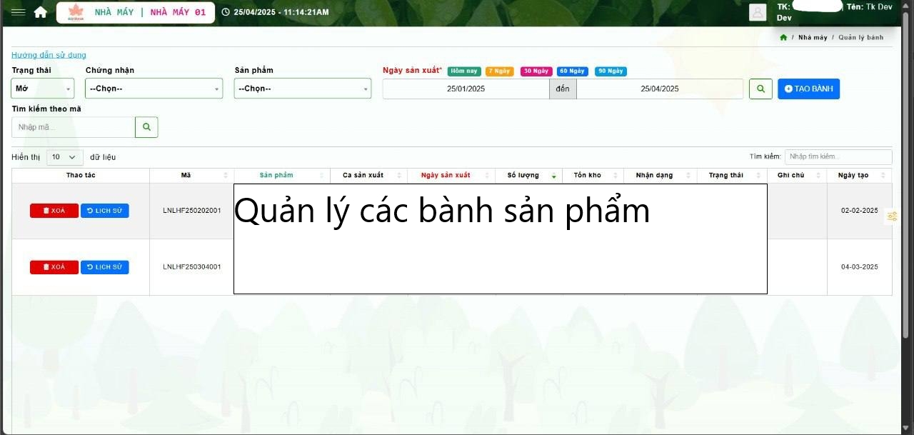 - Lưu vết lô hàng, sản lượng, khu vực sản xuất