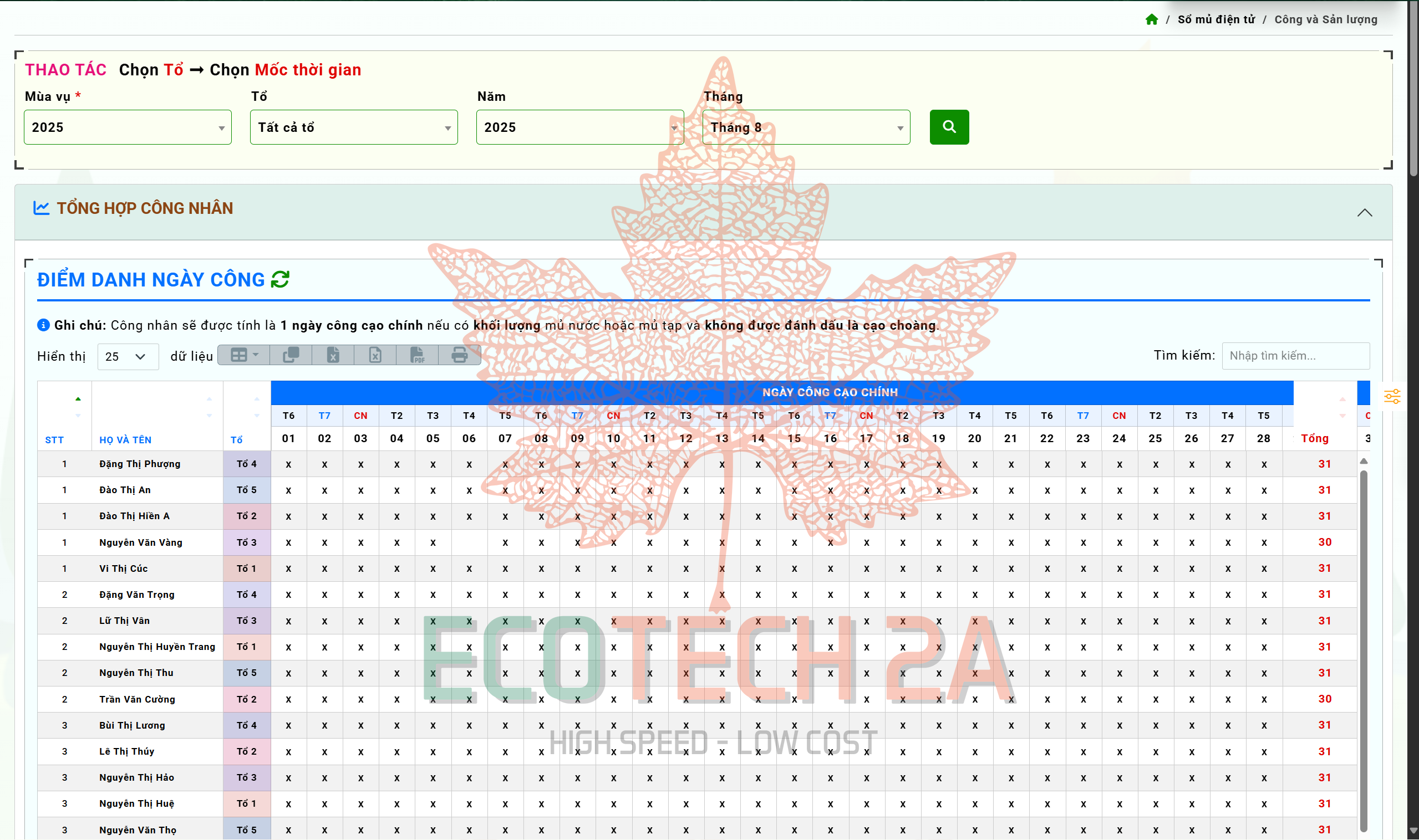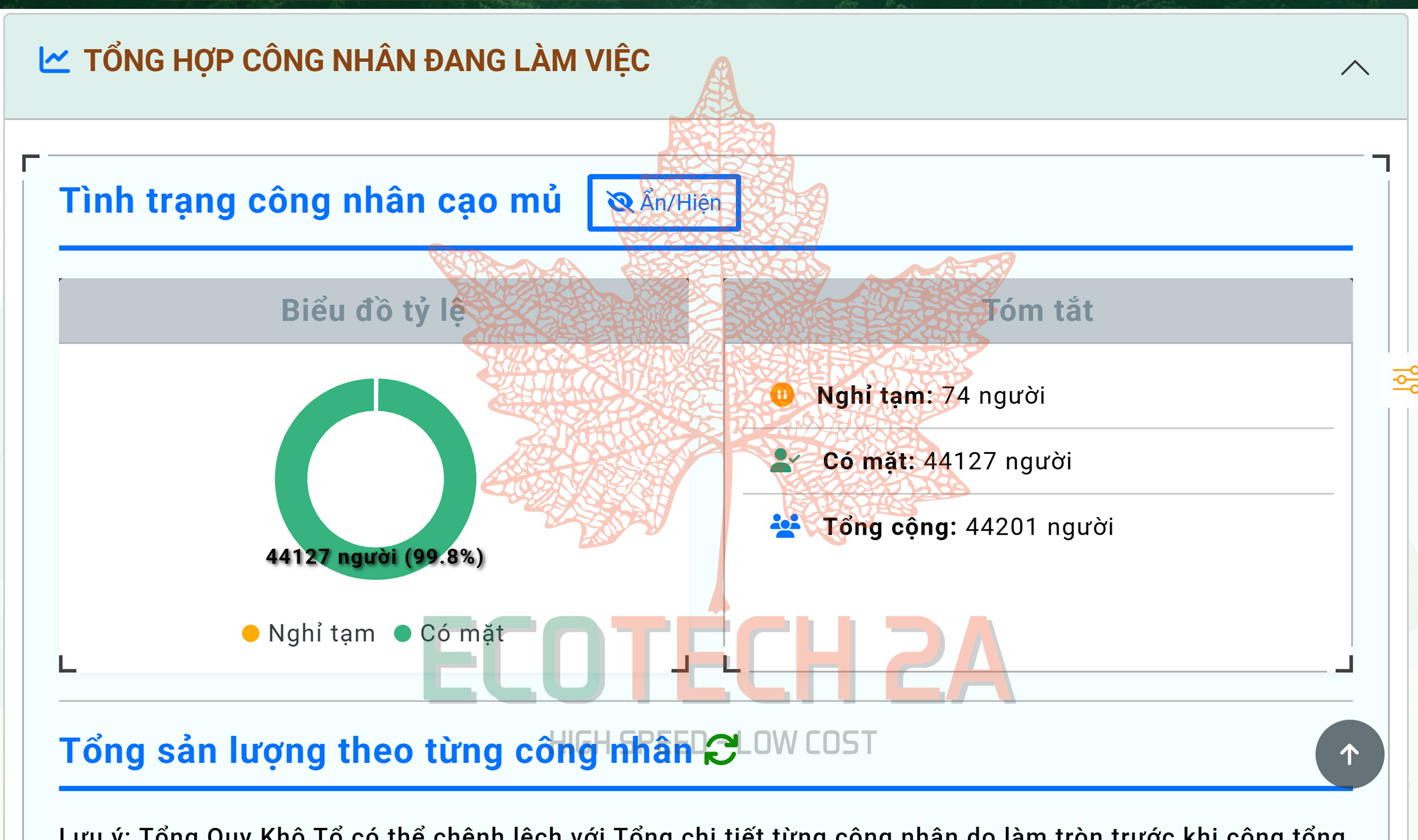- Báo cáo chi tiết sản lượng, công việc hàng ngày